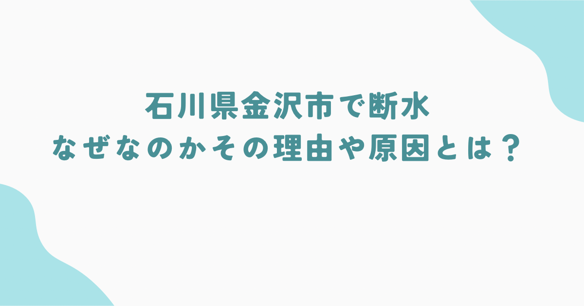 金沢市で断水が起きた理由とは?