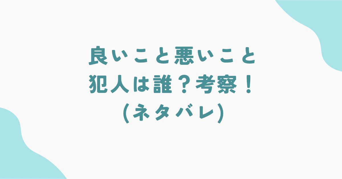 ドラマ『良いこと悪いこと』がついにクライマックスに向かい、視聴者の間で犯人は誰なのか、様々な考察が飛び交っています。第6話「傘」では新たな事件の展開や人物の裏の顔が明らかになり、SNSでは意見が分かれる状況です。本記事では、ドラマのネタバレを含みつつ、登場人物や事件の背景、視聴者の声を整理しながら、犯人についての考察をまとめます。