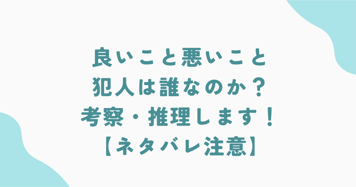 良いこと悪いことの犯人は誰なのか?考察・推理します【ネタバレ注意】