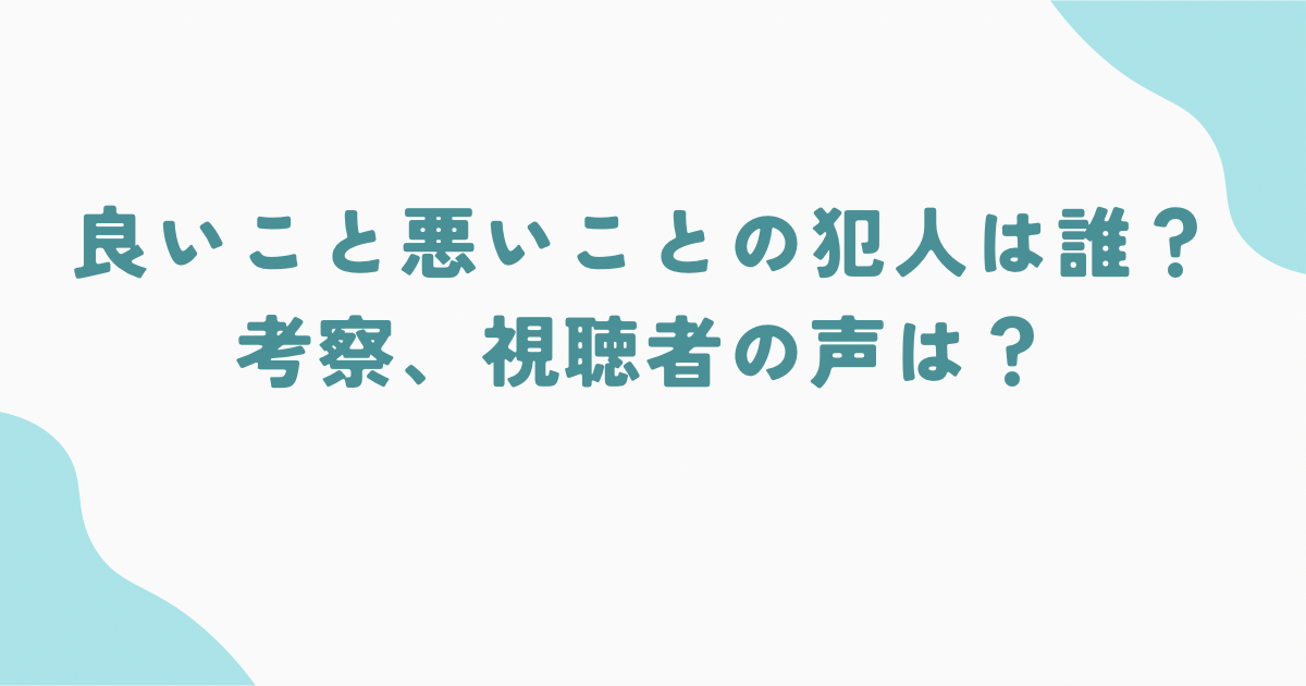 良いこと悪いことの犯人は誰?考察、視聴者の声は?