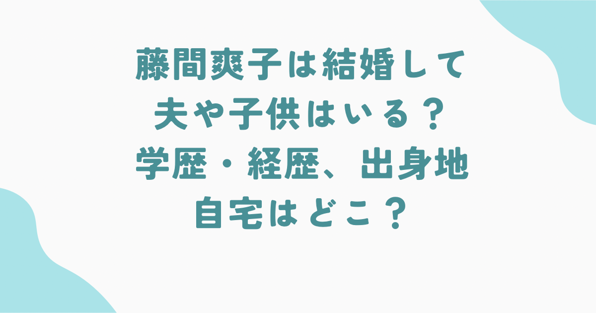 藤間爽子さんご本人が結婚を公表したという公式な発表や報道は確認されていません(公表がない限り私生活の状況は変わり得ます)。そのため「夫」「子どもがいる」といった情報も確認できません。