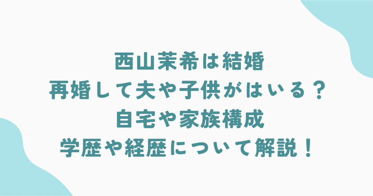 ・西山茉希さんは2013年に結婚、2019年に離婚を公表しており、執筆時点で再婚の発表はない。