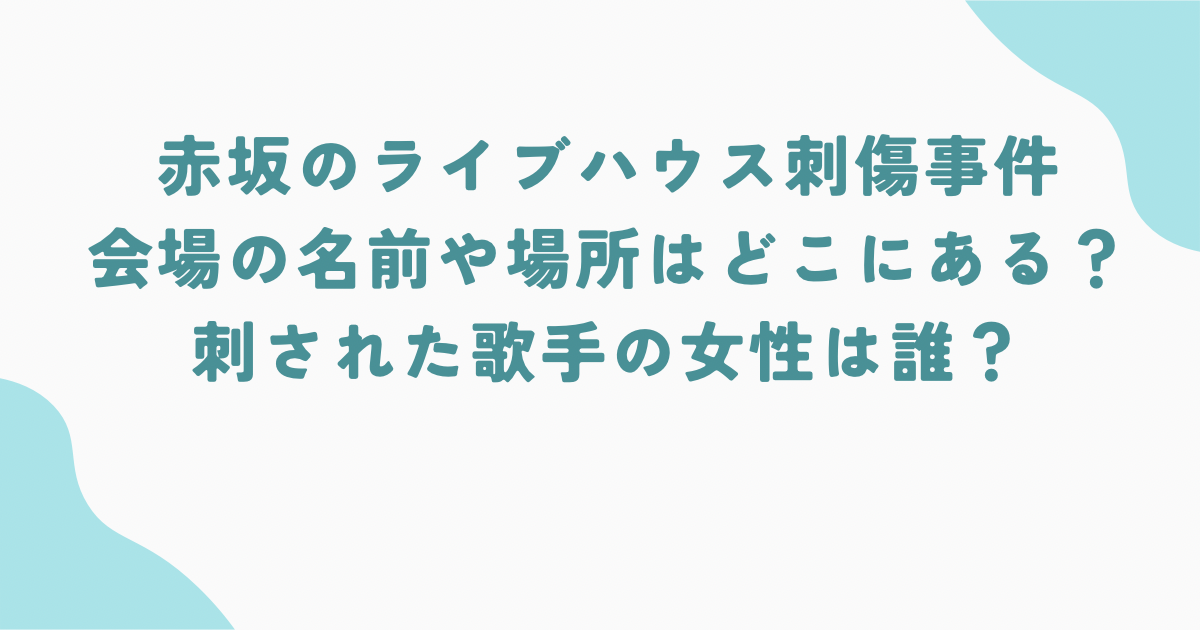赤坂のライブハウス刺傷事件の会場の名前や場所はどこにある?刺された歌手の女性は誰?