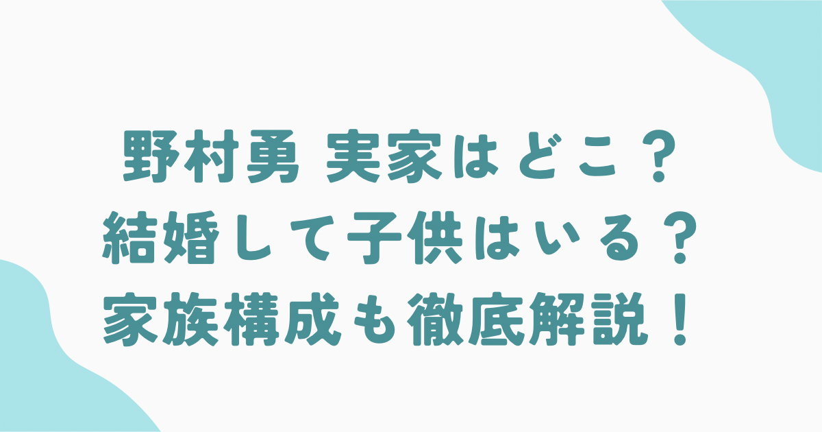 野村勇 実家はどこ?結婚して子供はいる?家族構成も徹底解説!