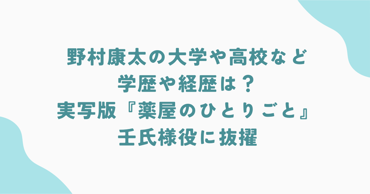 野村康太の大学や高校など学歴や経歴は?実写版『薬屋のひとりごと』壬氏様役に抜擢