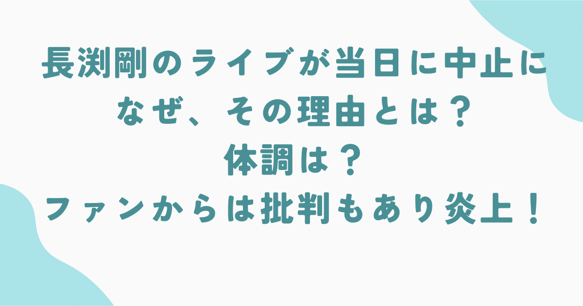 - 理由:長渕本人の体調不良 → 病院での診察を経て医師判断により中止