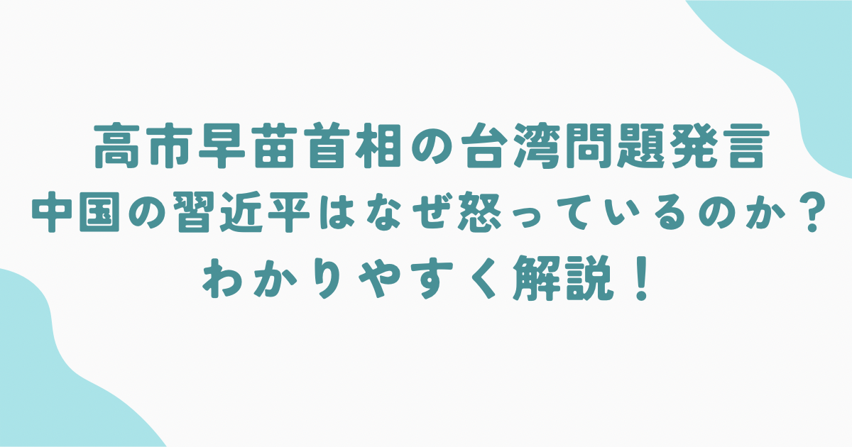 2025年11月、日本の高市早苗首相が台湾をめぐる発言を行い、中国の習近平国家主席や政府が強く反発しています。高市首相は、中国が台湾を攻撃した場合、日本が自衛隊で対応できる可能性を示唆しました。この発言がなぜ中国を怒らせたのか、歴史的背景や安全保障上の「戦略的あいまいさ」と合わせて、わかりやすく解説します。