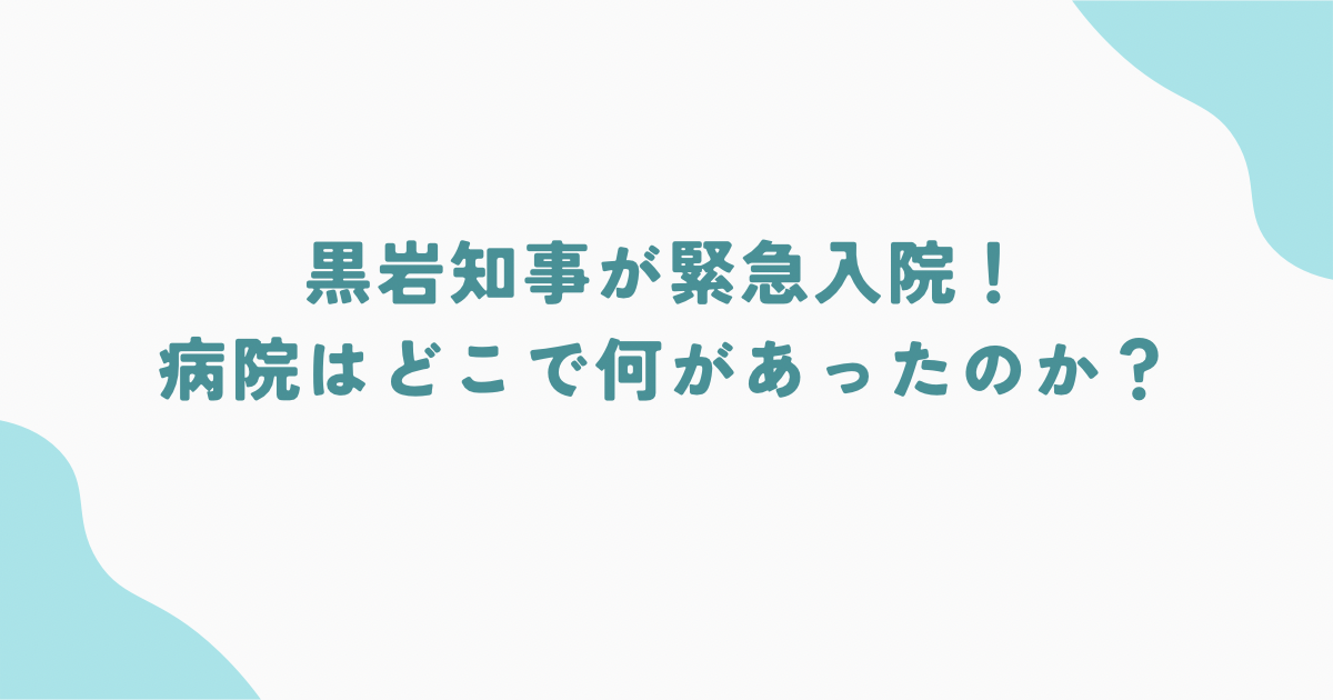神奈川県の黒岩祐治知事が、体調不良を訴え緊急入院したというニュースが報じられ、県民の間に不安が広がっています。
