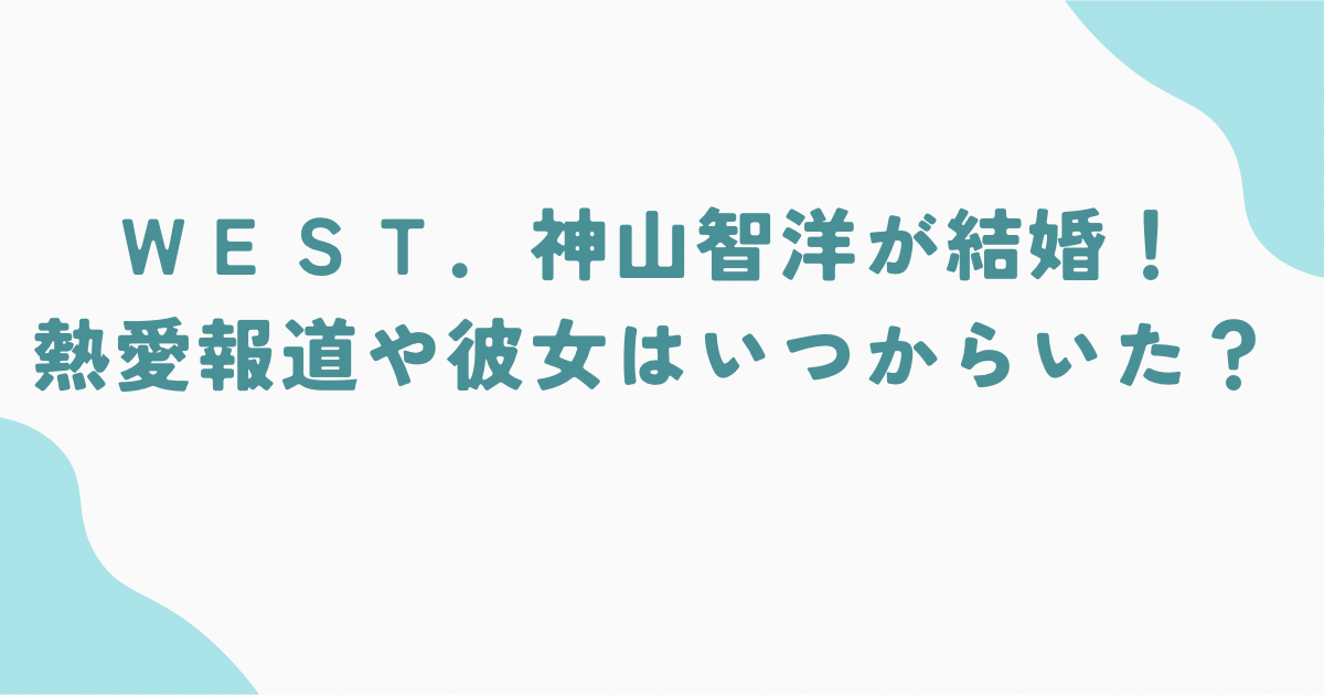この記事では、神山智洋さんの結婚発表の詳細や、お相手・熱愛の噂、そしてWEST.のメンバーたちの近年の結婚ラッシュについてまとめました。