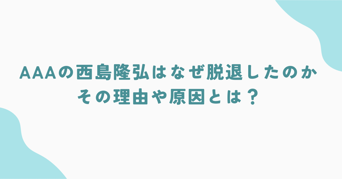 この記事では、西島隆弘さんがAAAを脱退するに至った理由や背景、これまでの経緯、そして今後の活動について分かりやすく整理していきます。
