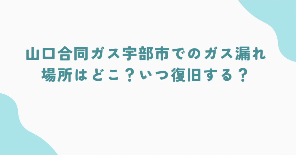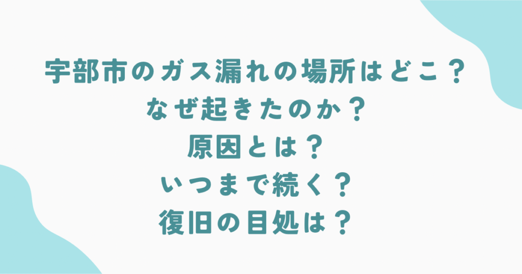 宇部市のガス漏れの場所はどこ?なぜ起きたのか?原因とは?いつまで続く?復旧の目処は?
