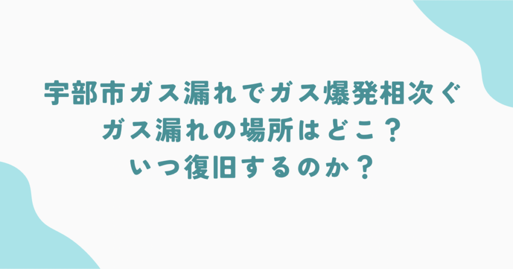 宇部市ガス漏れでガス爆発相次ぐ。ガス漏れの場所はどこ?いつ復旧するのか?
