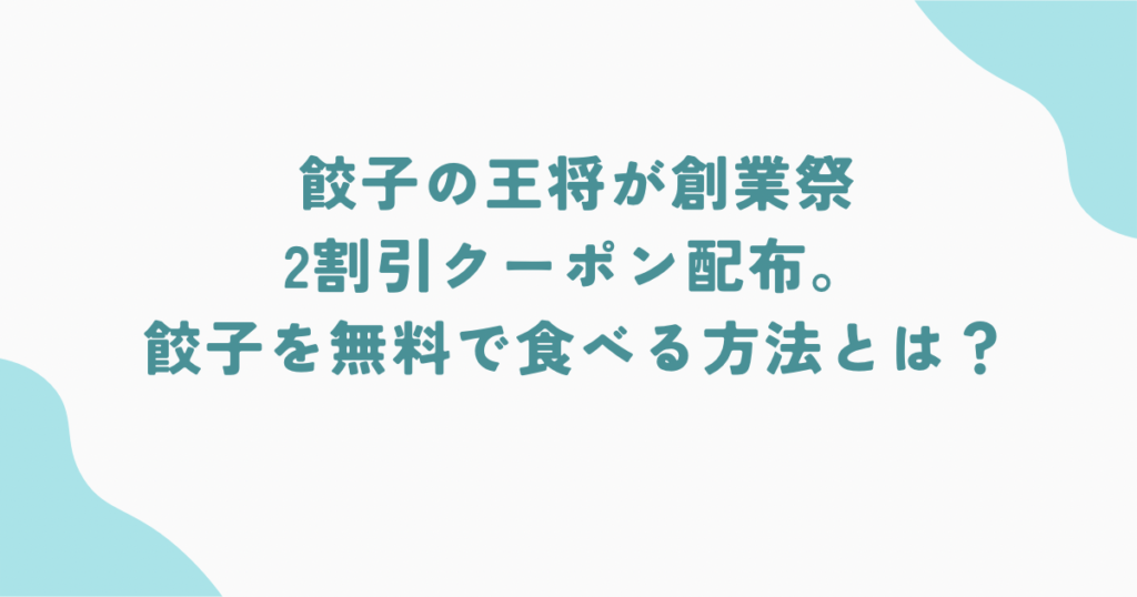餃子の王将が創業祭で割引クーポン配布。餃子を無料で食べる方法とは?
