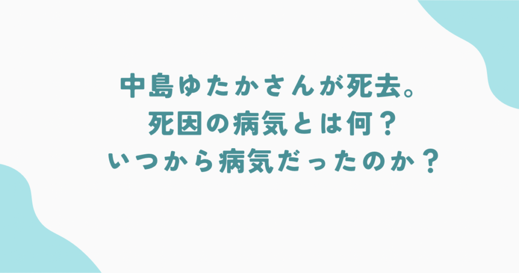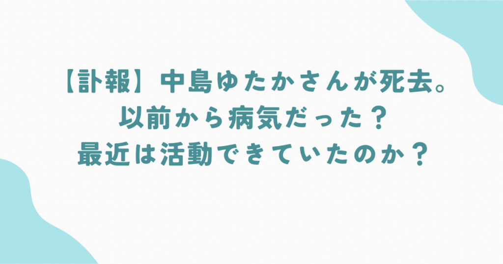 【訃報】中島ゆたかさんが死去。以前から病気だった?最近は活動できていたのか?