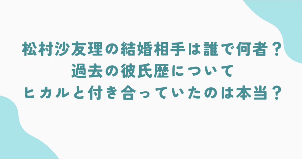 松村沙友理の結婚相手の旦那は何者?過去の彼氏歴について。ヒカルと付き合っていたのは本当?