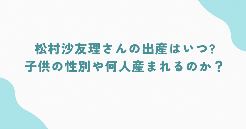 元乃木坂46の人気メンバー・松村沙友理さんが、2025年12月3日に結婚と妊娠を発表しました。 ファンの間では「出産はいつ?」「性別は?」「名前は?」など、気になる声が多く上がっています。 この記事では、現在明らかになっている情報をもとに、松村沙友... -