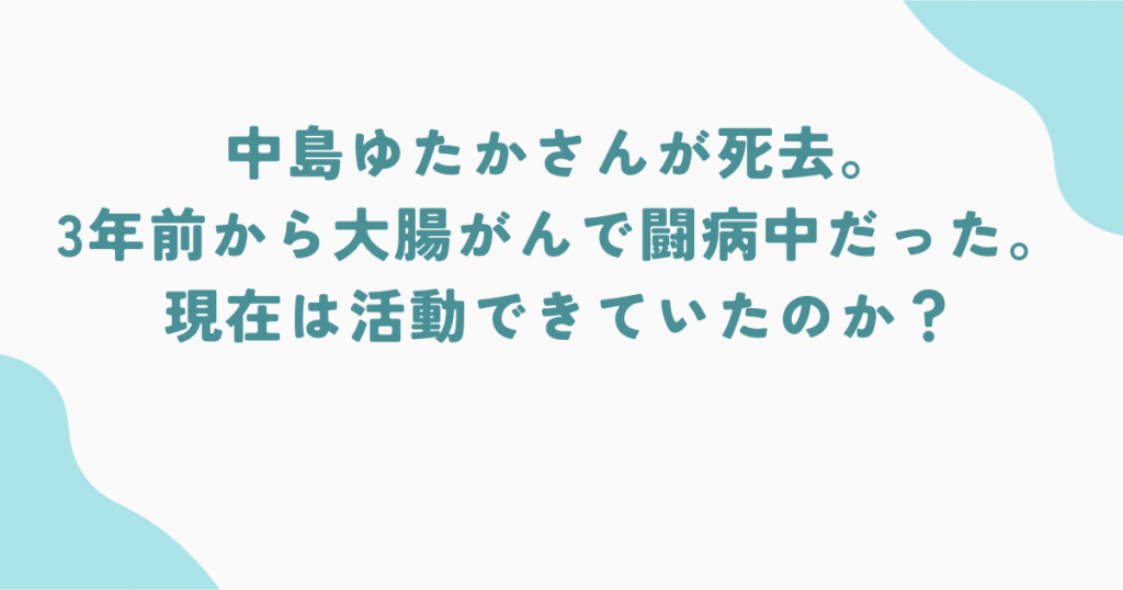 中島ゆたかさんが死去。3年前から大腸がんで闘病中だった。現在芸能活動はできていたのか?