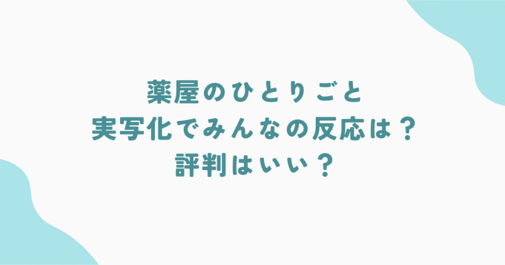 薬屋のひとりごとが実写化でみんなの反応は?SNS・ネット上での評判はいい?