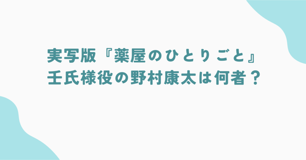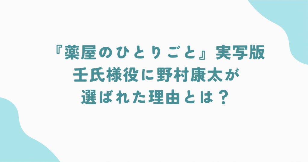 2025年12月3日、『薬屋のひとりごと』の実写映画化が週刊文春によって報じられました。 その中でも最も大きな話題となったのが、美しく中性的な魅力で人気のキャラクター・壬氏(ジンシ)役に、若手俳優の野村康太さんが抜擢されたというニュース。 「なぜ... -