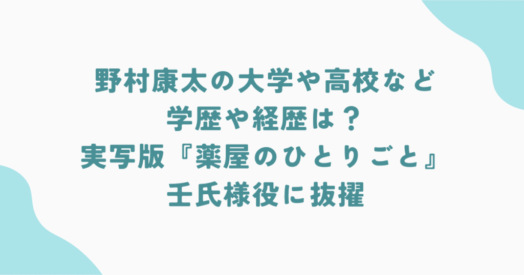 野村康太の大学や高校など学歴や経歴は?実写版『薬屋のひとりごと』壬氏様役に抜擢