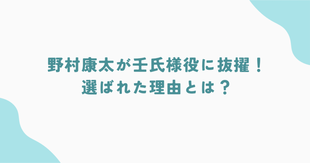 野村康太が壬氏様役に抜擢!選ばれた理由とは?