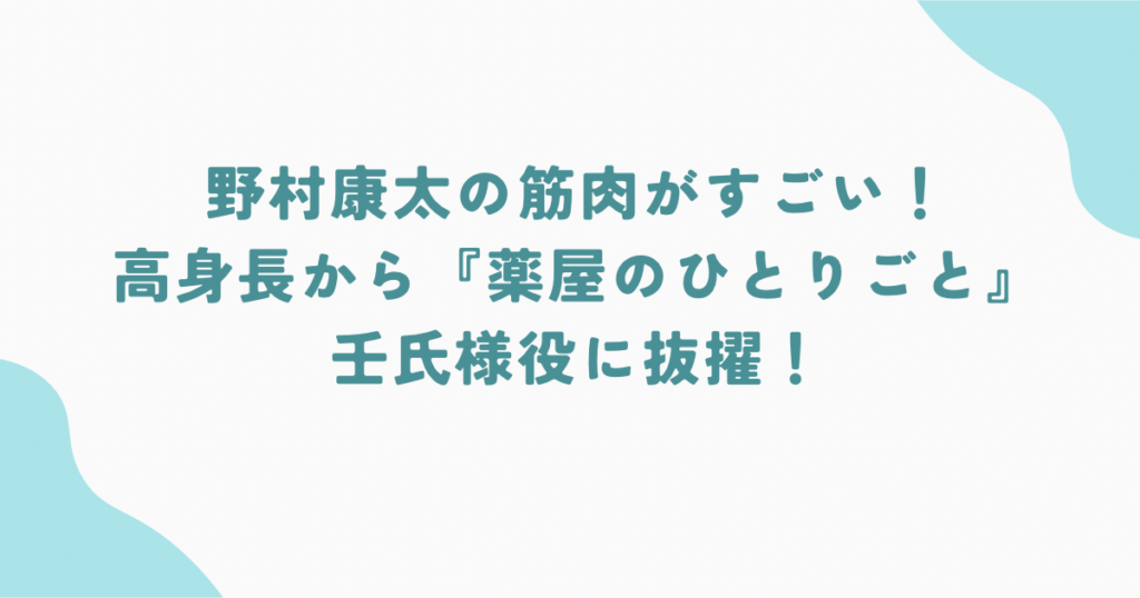 野村康太の筋肉がすごい!高身長から『薬屋のひとりごと』壬氏様役に抜擢!