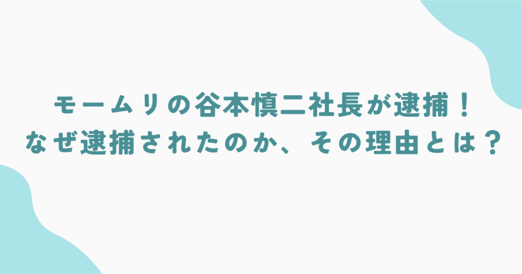 モームリの谷本慎二社長が逮捕!なぜ逮捕されたのか、その理由とは?