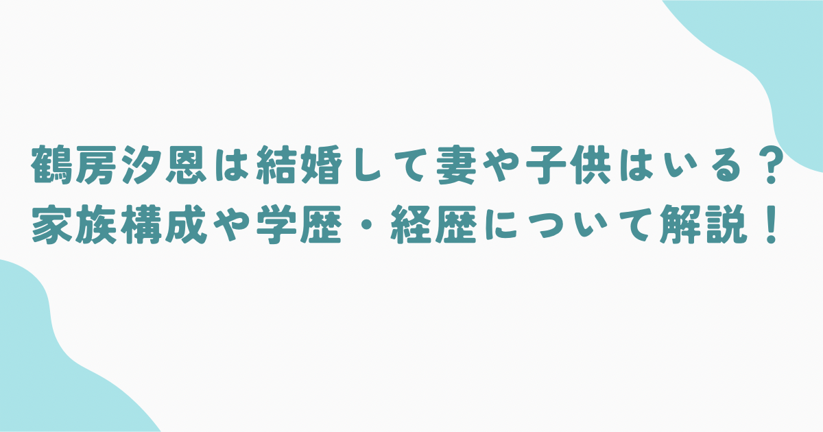 - 鶴房汐恩は独身で、妻や子供はいない