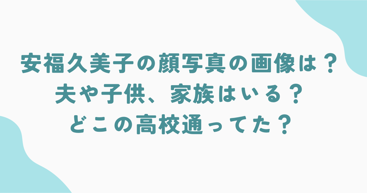 安福久美子の家族は?子供や夫はいる?顔写真の画像は?どこの高校通ってた?