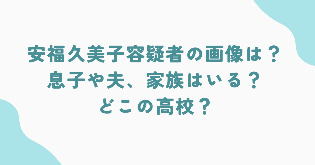 安福久美子容疑者の画像は?息子や夫、家族はいる?どこの高校?