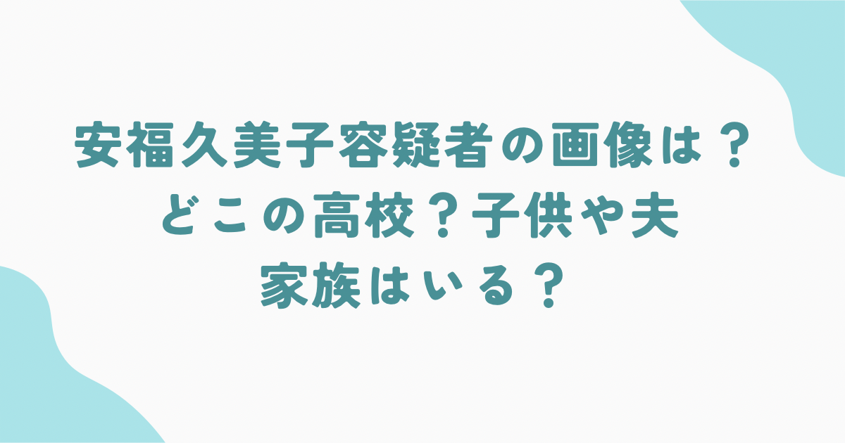 安福久美子容疑者の画像は?どこの高校?子供や夫、家族はいる?