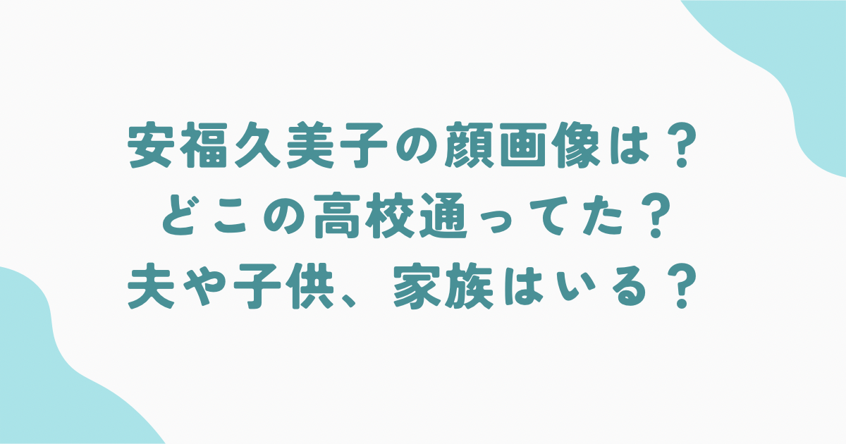 安福久美子の顔画像は?どこの高校通ってた?夫や子供、家族はいる?