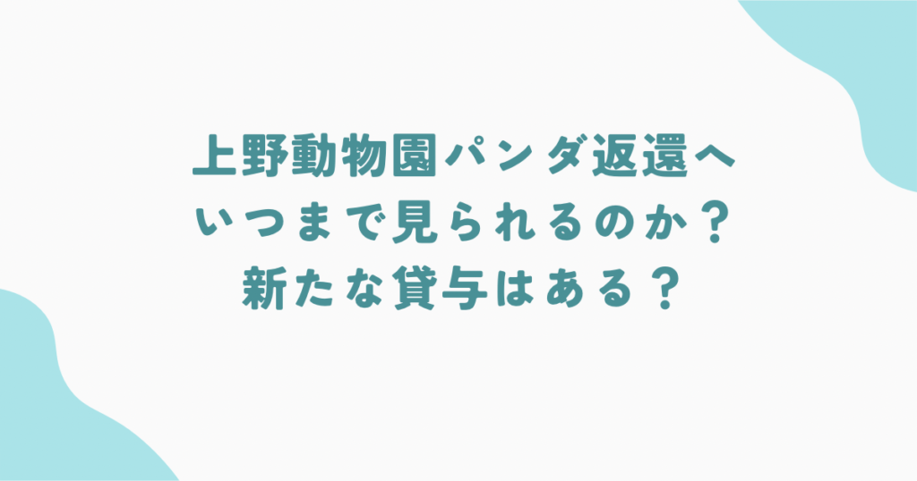 上野動物園パンダ返還へ。いつまで見られるのか?新たな貸与はある?