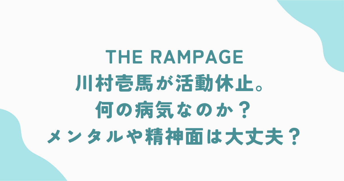 THE RAMPAGEのボーカルとして活躍する川村壱馬さんが、精神的な不調を理由に一定期間の活動休止を発表しました。