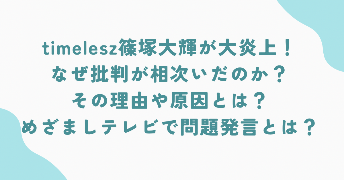 11月18日に放送された『めざましテレビ』で、timeleszの新メンバー・篠塚大輝さんが披露した“自作ギャグ”がSNSで大きな物議を醸しています。
