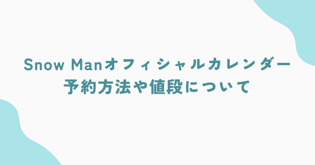 Snow Manオフィシャルカレンダーの予約方法や値段について